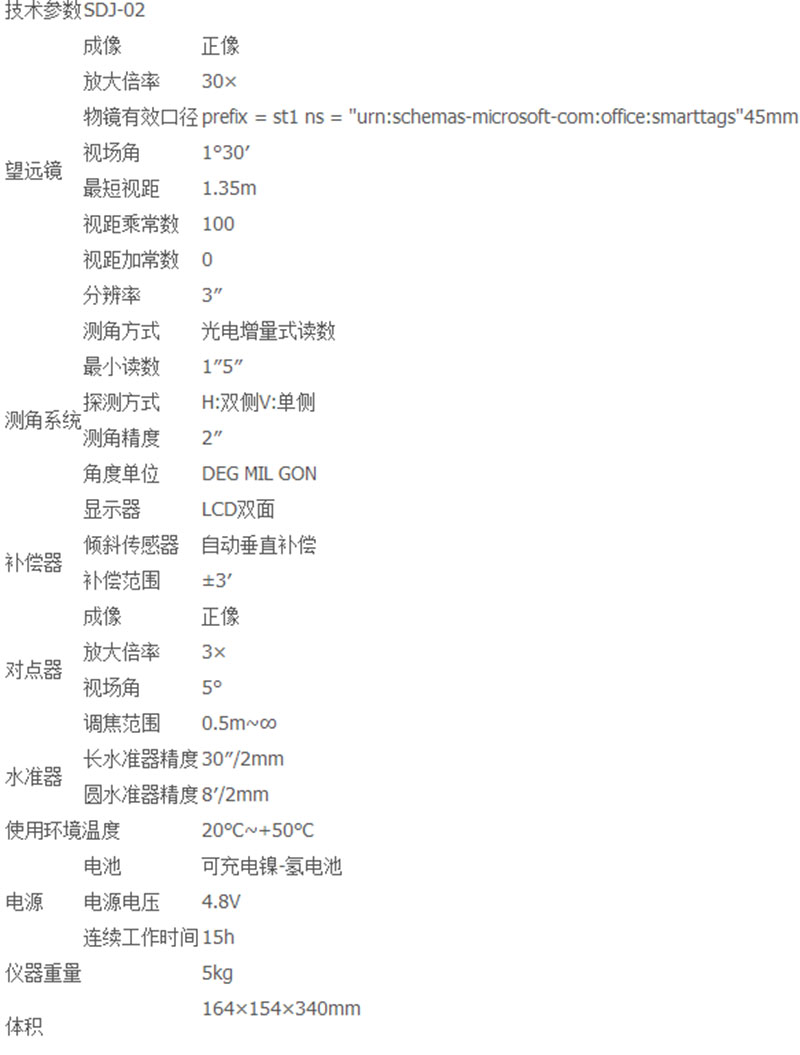 天津赛特电子经纬仪采用光栅增量式数字角度测量系统;使用微型计算机技术进行测量、计算、显示、存储等多项功能;可同时显示水平、垂直角测量结果;可以进行角度、坡度等多种模式的测量。SDJ用于铁路、公路、桥梁、水利、矿山等方面的工程测量,也可用于建筑、大型设备的安装,应用于地籍测量、地形测量和多种工程测量。